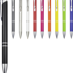 Our aluminium ballpoint pens have a click-action mechanism, lacquered finish, polished shine, and striking chrome details.