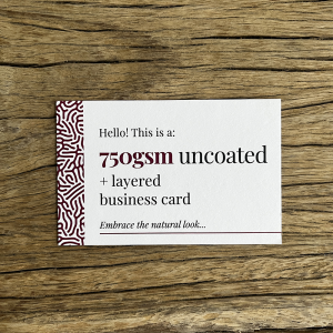 With two thick uncoated textured boards and one or two centre colours sandwiched in the middle, your business cards will pack a heavyweight punch. Say goodbye to flimsy, forgettable cards and hello to a lasting first impression.