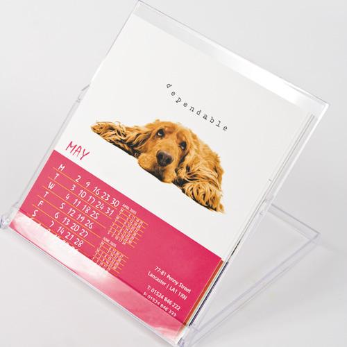 Compact, colourful and customer pleasing. These Case Calendars come in two sizes complete with acrylic case and 14 separate cards. The cards fit snugly into the case which in turn fits into the dinkiest of spaces. So even the smallest offices will appreciate one of these.
