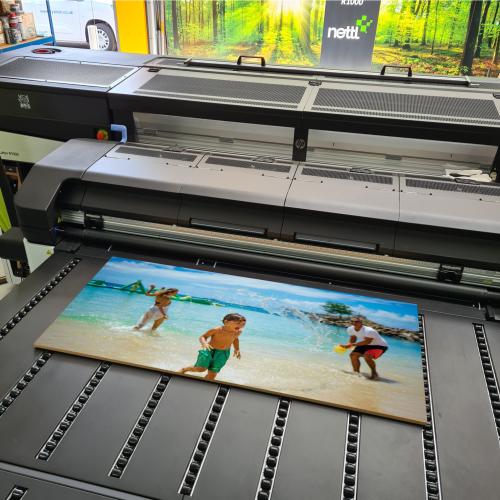 Printed MDF board is a great PVC free alternative for indoor display graphics. Suitable for all types of internal signs and display plus the added benefit of being fully recyclable when printed with our eco water-based latex inks.