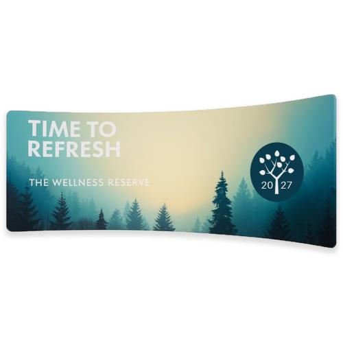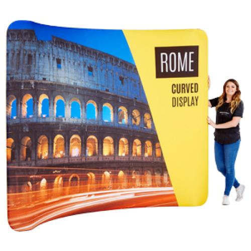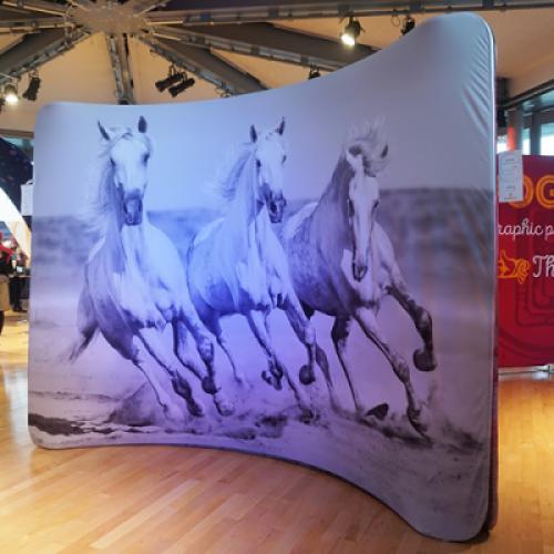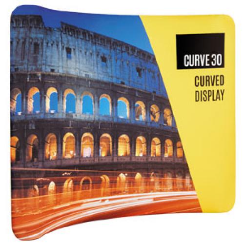 Our range of curved backdrops are made from a strong, lightweight, aluminium frame and a fabric cover, which can be printed on both sides. They are perfect for defining an exhibition area or dividing wide open office spaces.
