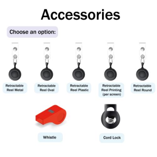 When you add lanyards to your cart, you'll find a wide variety of clips, accessories, card holders, and other add-ons to choose from.