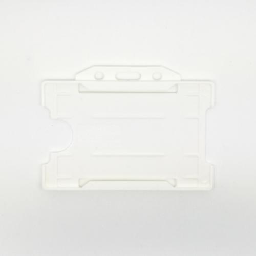 Our rigid card holders are available in a variety of colours and landscape or portrait, both options to be chosen at checkout. An antimicrobial version of these is available that contains Biomaster which disrupts bacteria cells from growing. They allow a card size of 86 x 54mm.