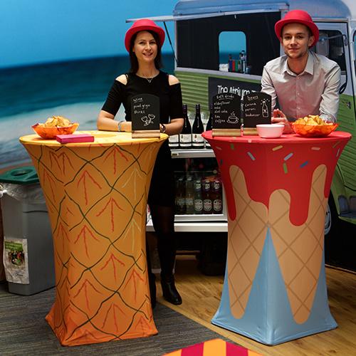 These tables provide that useful platform whilst working hard to promote your brand, product or service at the same time.