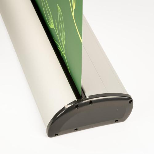Our eco roller banner stand is a more durable, yet sustainable option for more eco conscious clients. Using our gorgeous 200 micron PVC grey back film and a unit that features a changeable cassette, you can replace the graphics in future without having to purchase a brand new stand. Ideal for frequent, more longer term use, our premium unit includes a height adjustable pole so you can vary the height of your banner. Unzip the included carry case, assemble the 3 part pole, adjust the height and pull up the banner into position. Replacement graphic cassettes can be ordered as a separate product.