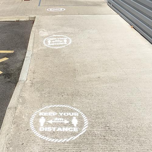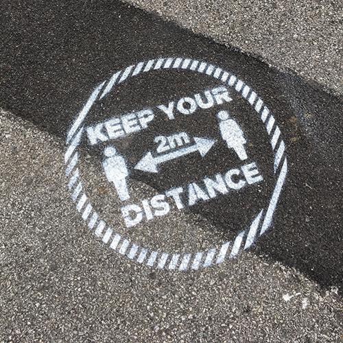 Help to reinforce social distancing practices with messages sprayed directly onto the floor. These floor stencils are custom-cut out of 3mm foamex board with your design, logo or message. Simply lay the stencil on the ground and spray with your own choice of spray paint over the top to imprint your design below.