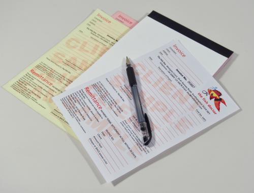 They are available in a variety of sizes with a white top sheet, a yellow middle sheet and a pink bottom sheet. Printed in full colour on the front and optionally the reverse - the perfect place to put your terms and conditions! Each book has a board backing, card cover and is taped along the spine. Very versatile!