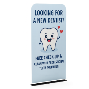 The banner stands are made up of two main components — a strong, lightweight, aluminium frame and a printed fabric cover.
