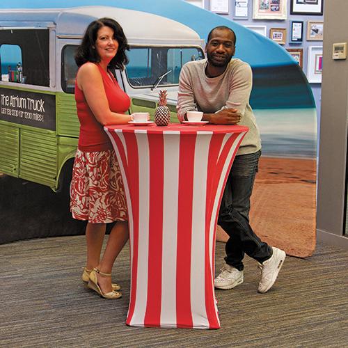These tables provide that useful platform whilst working hard to promote your brand, product or service at the same time.