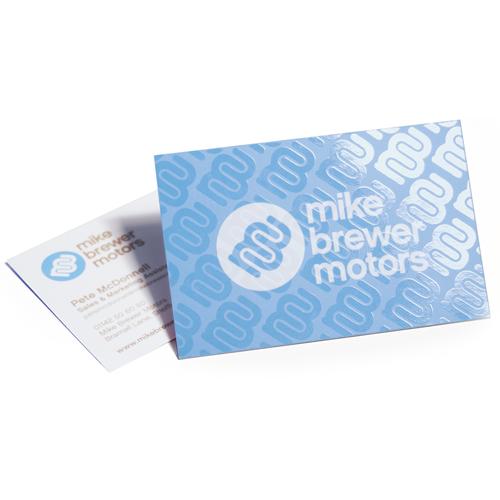 We recommend treating the Spot UV gloss as a separate design element on your business cards. Speak to us for advice on getting the best from your StarMarque UV business cards.